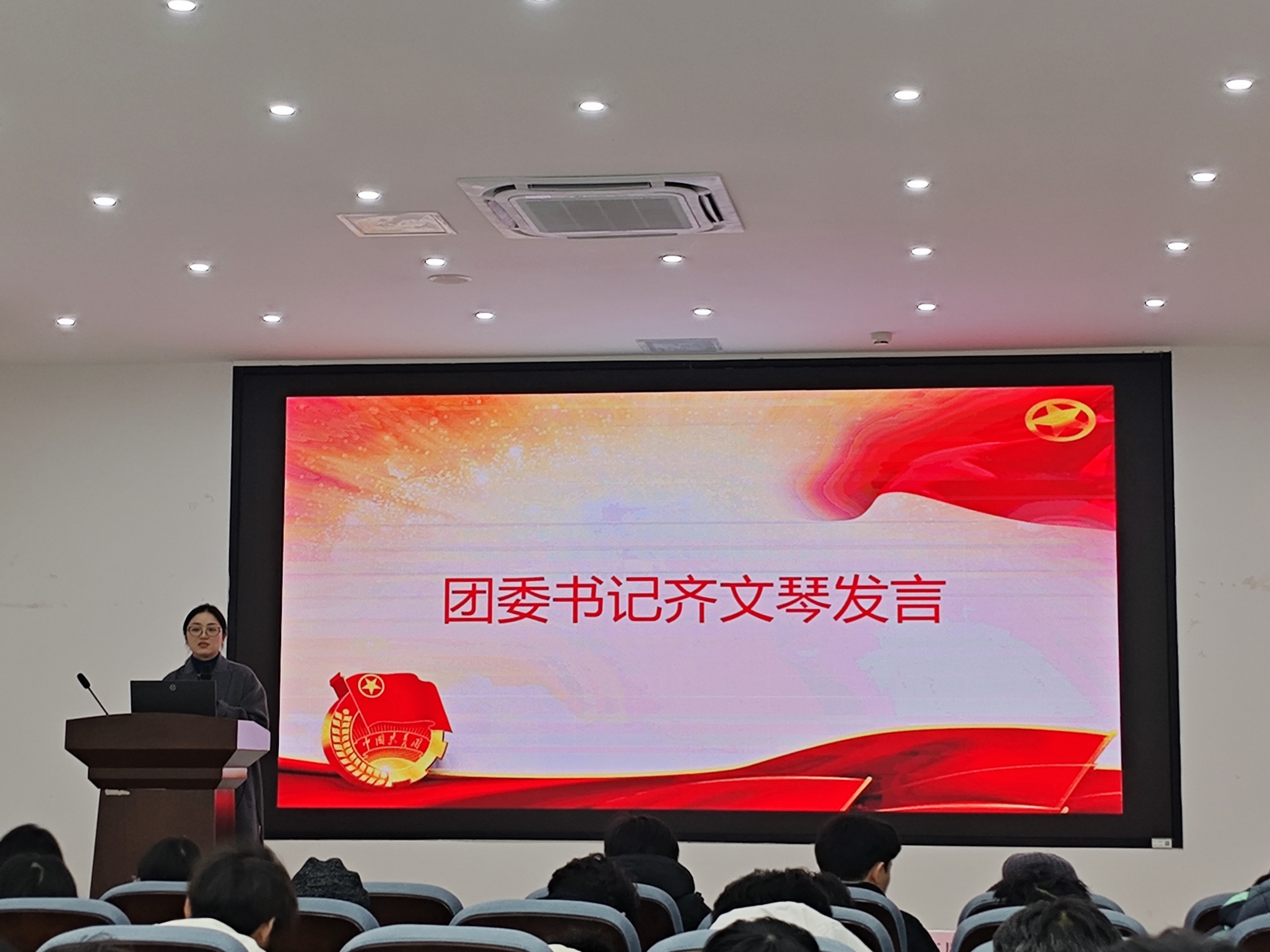 各部门汇报结束后,团委书记齐文琴总结讲话。她首先对全体团学成员本学期的辛勤付出与工作成效给予充分肯定,随后围绕团队协作、责任意识、创新精神三大核心,强调了其在学生工作中的重要意义。她寄语全体成员,要始终保持工作热情,在实践中不断提升自身综合能力,以青春之力赋能学院高质量发展。