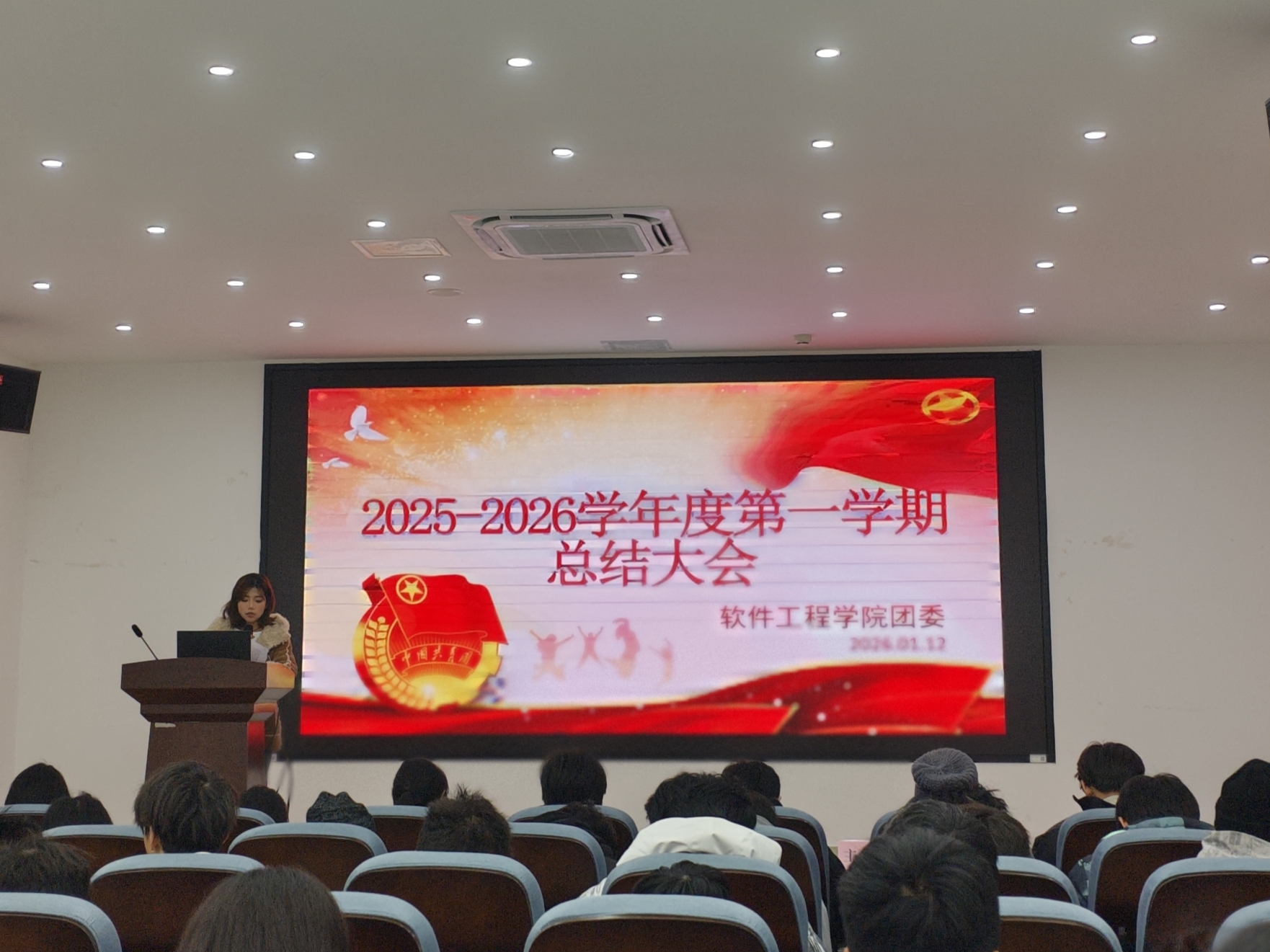 为系统总结学期团学工作成效,进一步凝聚组织合力,推动学院团学工作高质量发展,2026年1月12日,软件工程学院团委在信达楼产业互联网研究院召开2025-2026学年第一学期总结大会。学院团委书记齐文琴和团委、学生会全体成员参会。