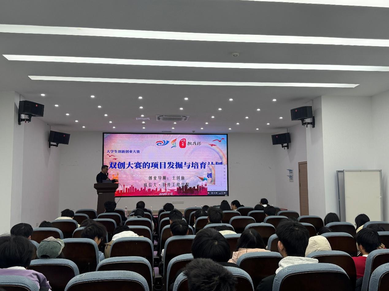 宣讲会上,周启忠副院长首先聚焦中国国际大学生创新大赛,全面解读赛事基本情况,重点阐释赛程安排、评审核心要点及参赛核心要求。他强调,双创竞赛既是展示大学生创意理念与项目实践能力的优质平台,更是锤炼团队协作、项目管理及实践应用能力的重要契机。针对备赛关键环节,周启忠副院长从团队精准组建、项目深度调研、商业计划书规范撰写等方面给出具体指导建议,为学子科学规划参赛项目、提升备赛效率提供了清晰路径。