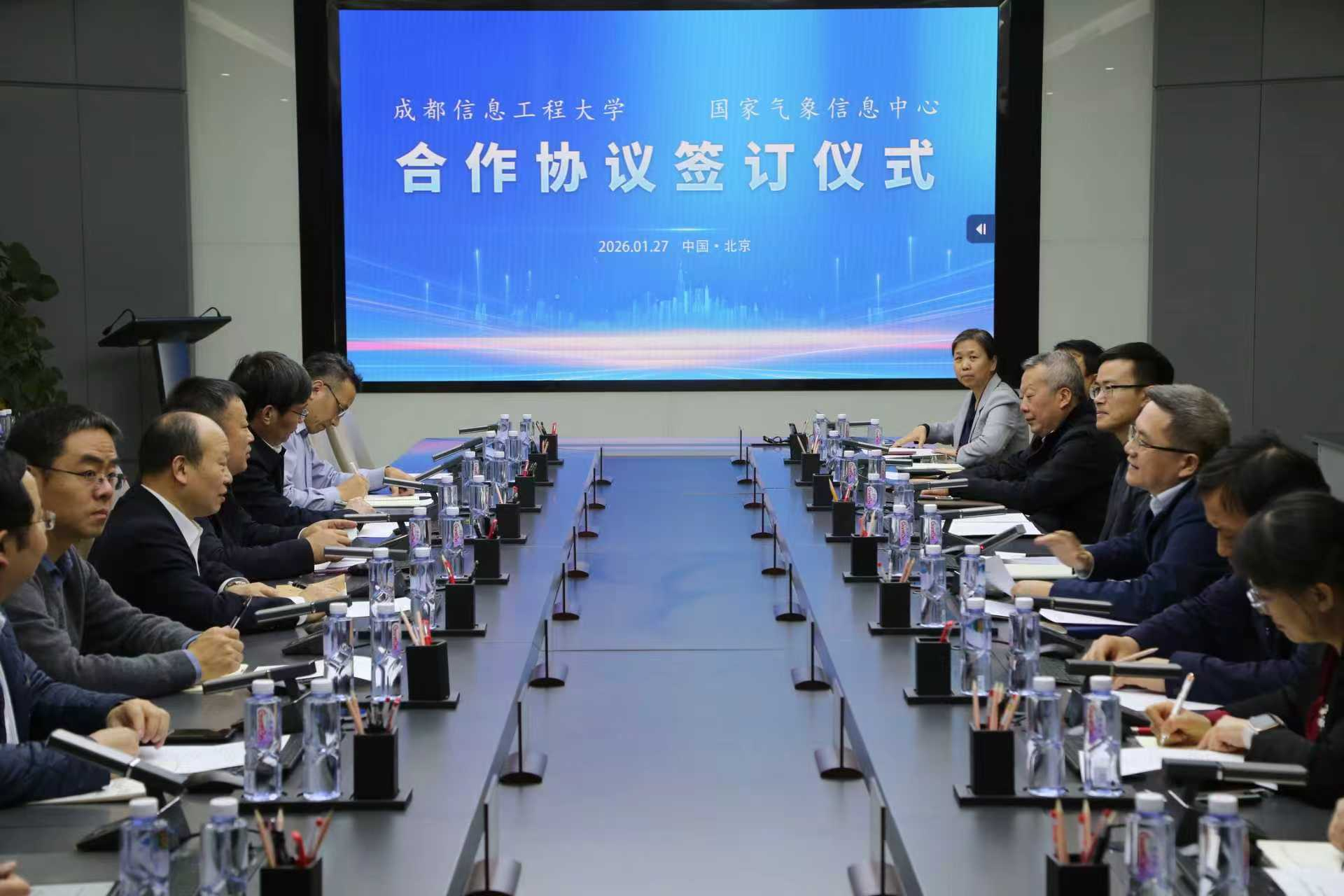 1月27日下午,为深化局校合作,学校与国家气象信息中心(以下简称“中心”)在北京正式签署了共建数据科学与大数据技术本科专业“英才班”合作协议。双方将进一步聚焦数字地球系统与“气象+”领域的高端人才培养,共同推动“英才班”合作协议的落实与实施。中心党委书记、主任肖文名,党委常委、副主任周自江,学校党委副书记、校长何建新,党委常委、副校长舒红平出席签约仪式。仪式由肖文名主持。